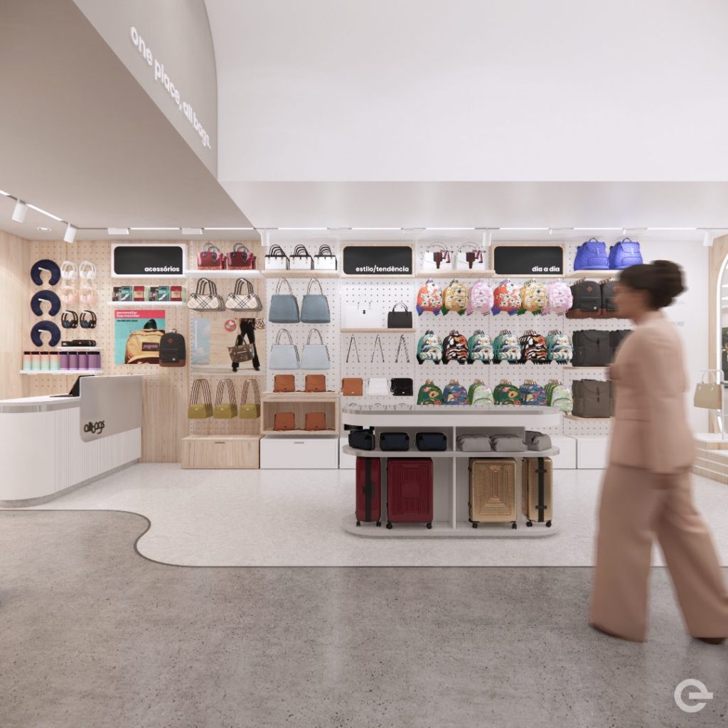 Fomos convidados pela Allbags a criar o novo conceito para as lojas da marca. O projeto aborda um refresh arquitetônico, acompanhado de novas soluções para a jornada de consumo.