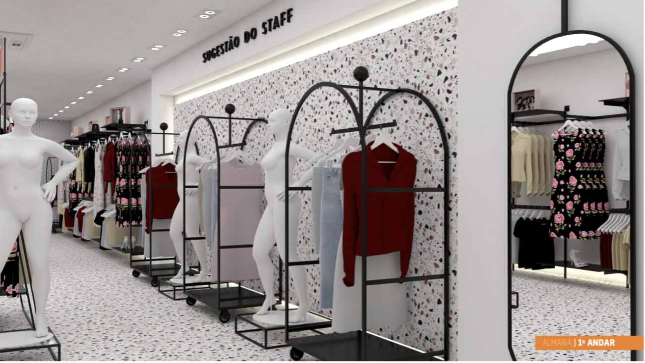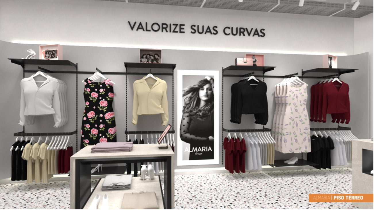 Tivemos a missão de construir uma melhor experiência para as mulheres Plus Size em uma loja. Fomos responsáveis por toda a criação do conceito arquitetônico + projeto de visual merchandising. Por se tratar de uma loja Pluz Size, criamos novas estratégias de exposição para uma jornada de compra eficiente e intuitiva. Nos provadores e banheiros, os espaços instagramáveis são um sucesso. Na entrega desse projeto, influenciadoras digitais Plus Size visitaram a loja, e nos disseram que o sentimento era de estarem em suas casas de bonecas.Um projeto premiado pelo RDI - Melhor loja formato médio.
