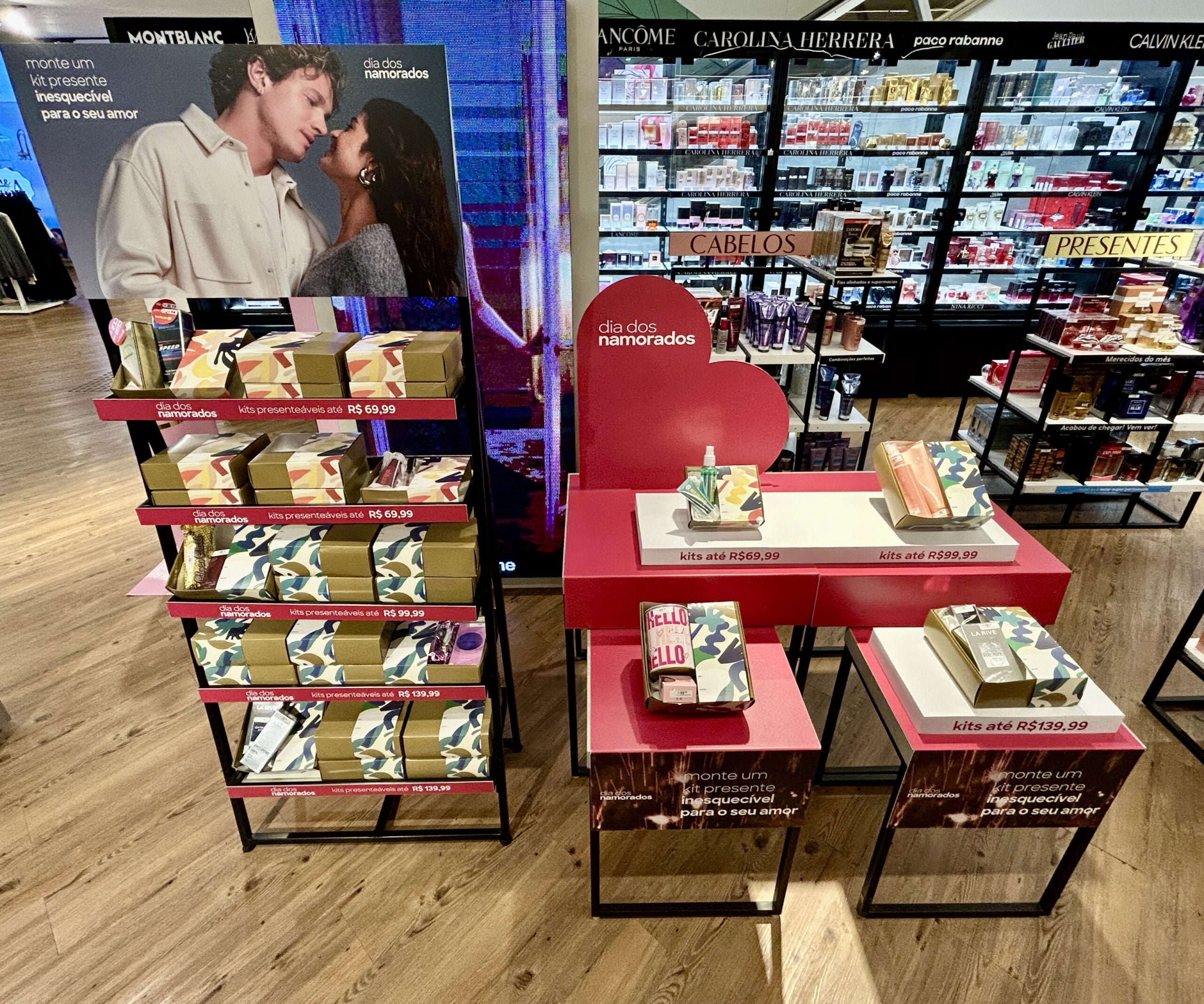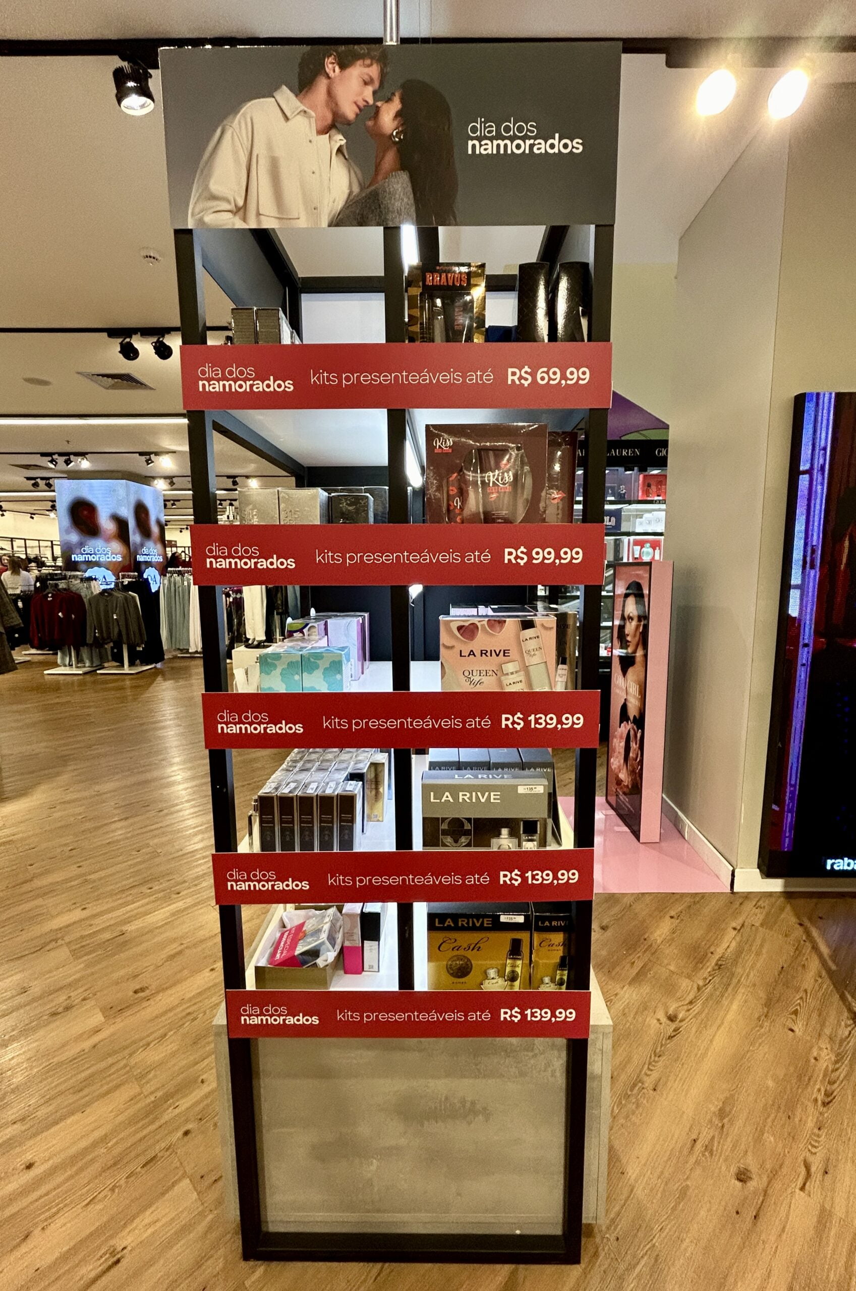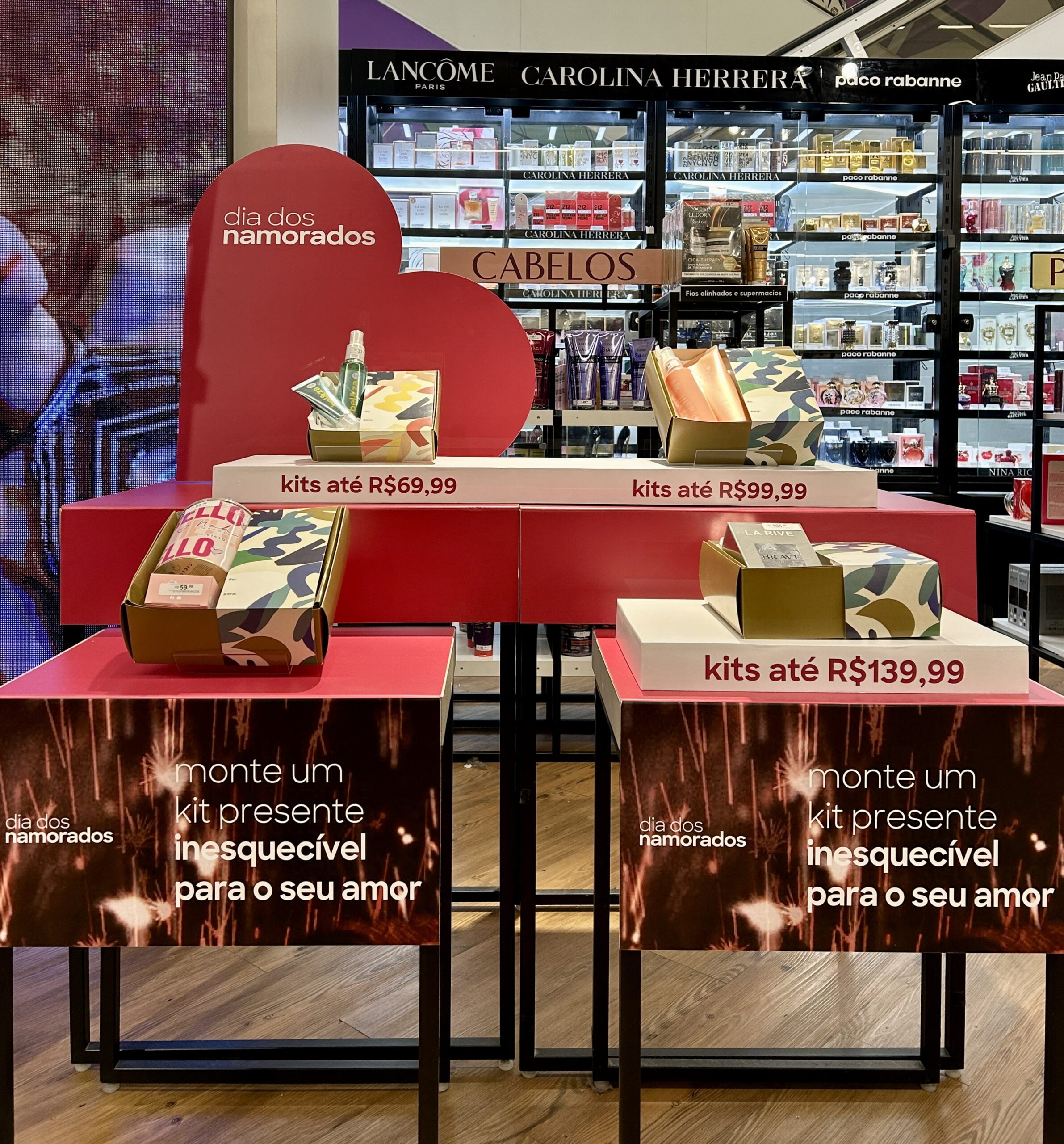 Para o espaço de beleza da C&A, desenvolvemos uma iniciativa especial para o Dia dos Namorados, com foco em aprimorar a apresentação dos kits presenteáveis, tanto das marcas parceiras quanto dos kits exclusivos da C&A. Atuamos na criação da campanha, na gestão da produção e na execução prática do VM (visual merchandising) de todo o projeto.