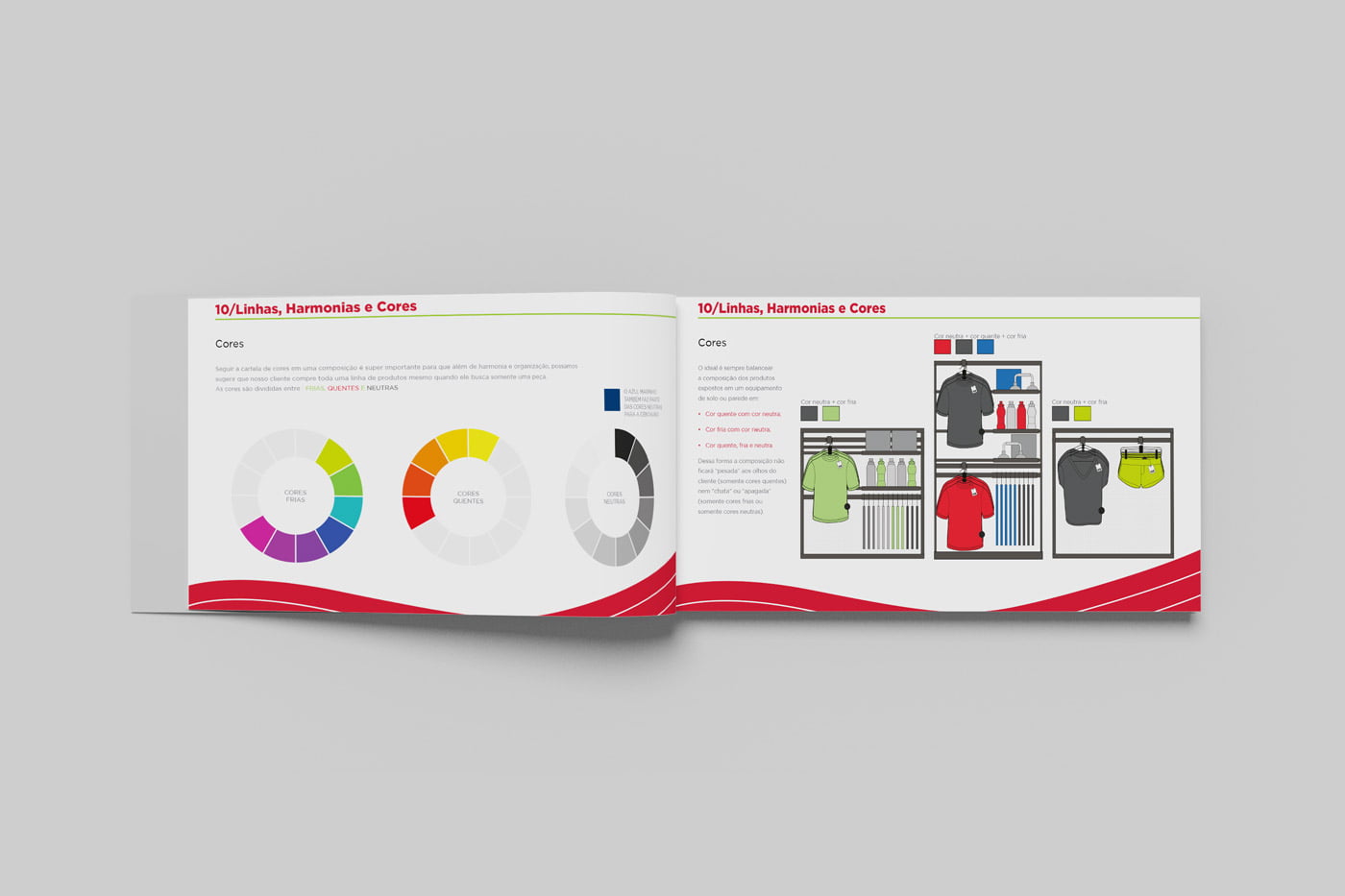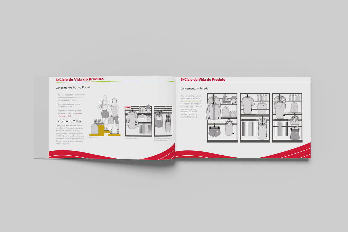 Desenvolvemos o manual de diretrizes de visual merchandising para a marca. Diagramamos e planejamos todo conteúdo do que chamamos de TCC do VM.