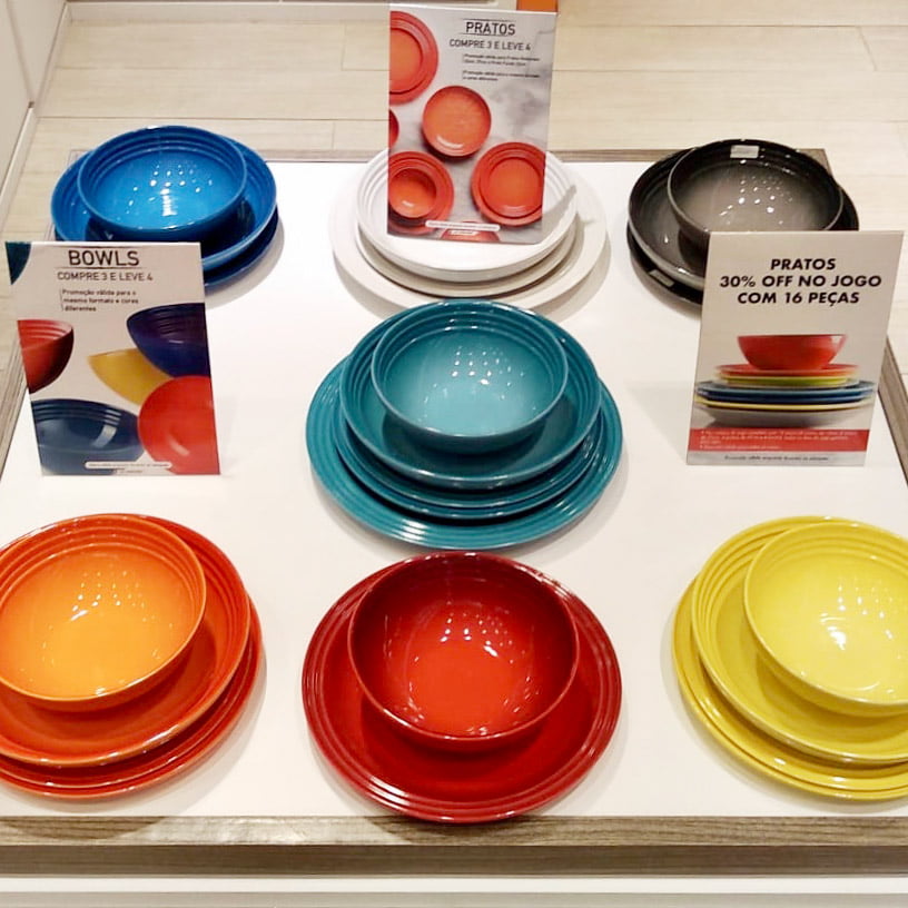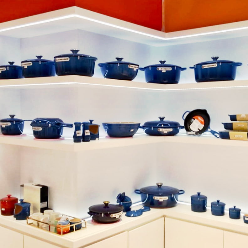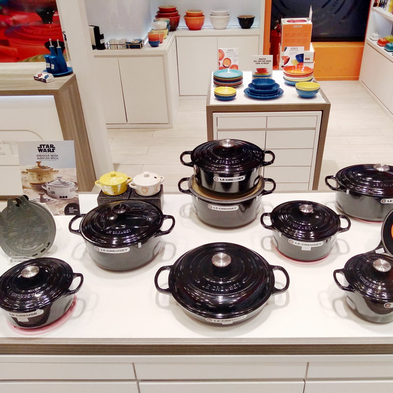 Para a Le Creuset, atuamos como um departamento externo para a marca, treinando o time das 20 lojas em todo o Brasil, gerindo por aplicativo toda a replicação da padronização da exposição de VM e executando as iniciativas de lançamento de produtos.