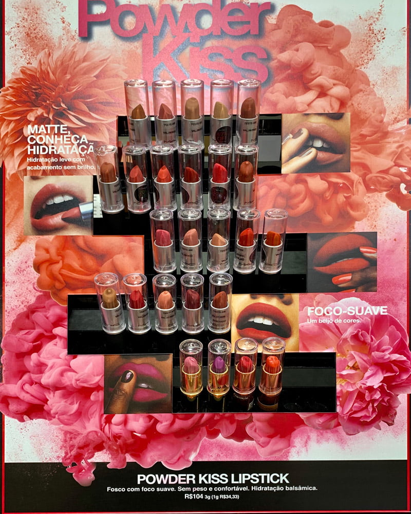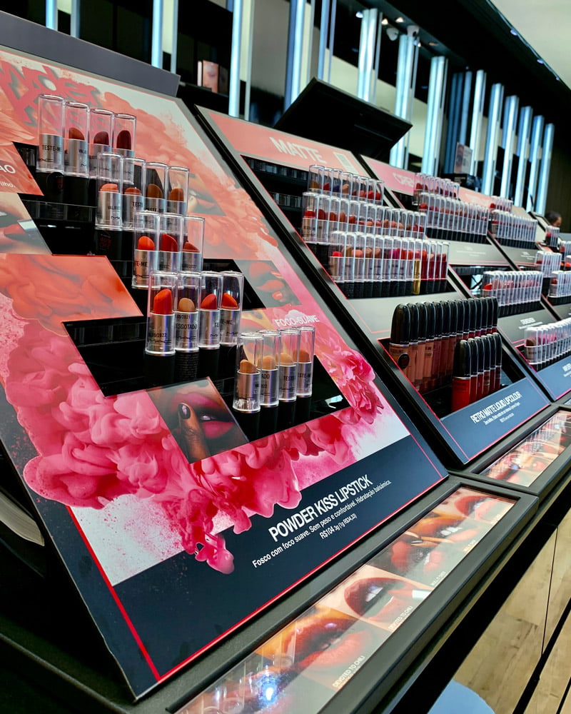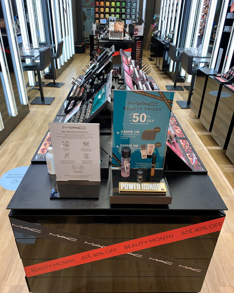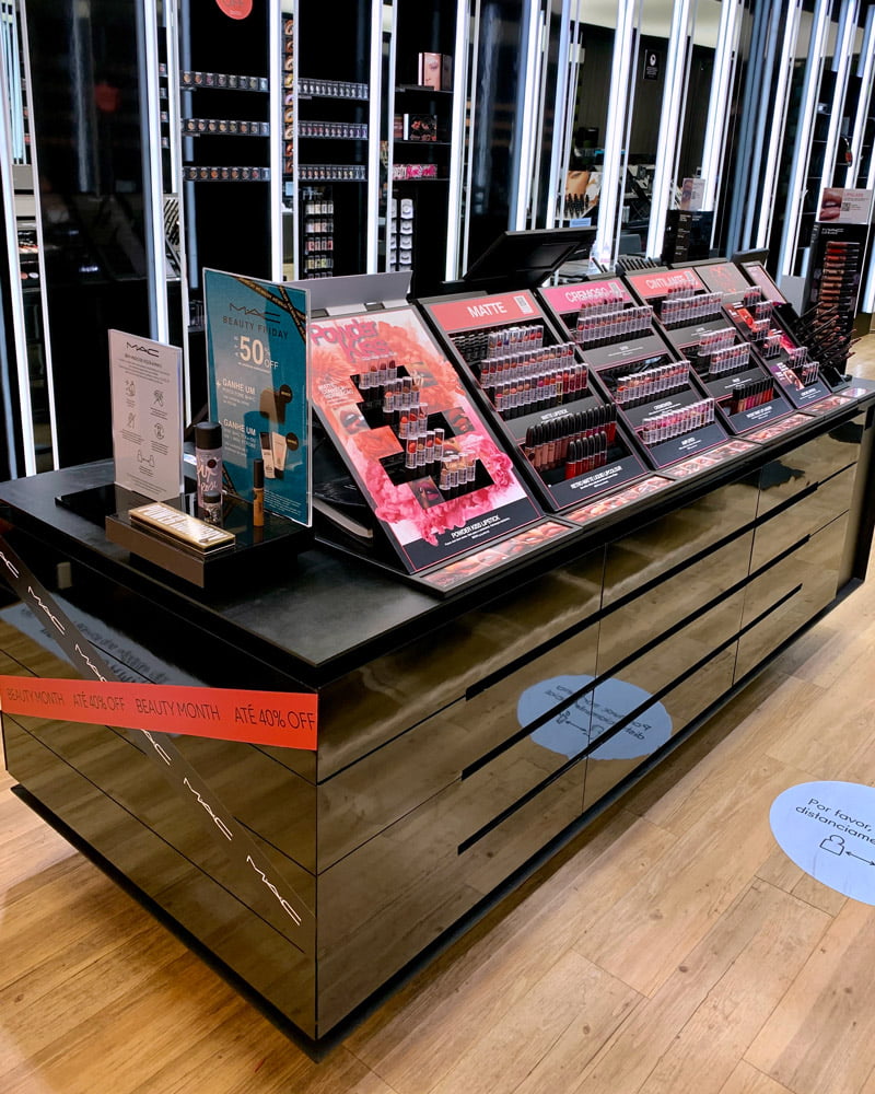 Para a MAC, atuamos com a estratégia e planejamento de VM para executar os novos displays para todas as lojas em todo o Brasil. Planogramas, visitas in loco e gestão por aplicativos da replicação e logística de envio dos materiais.