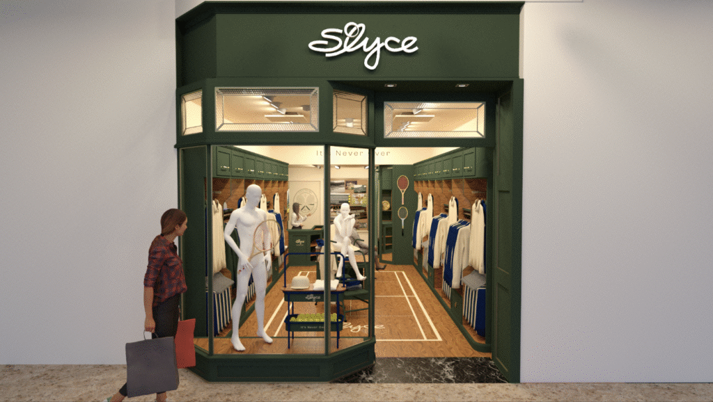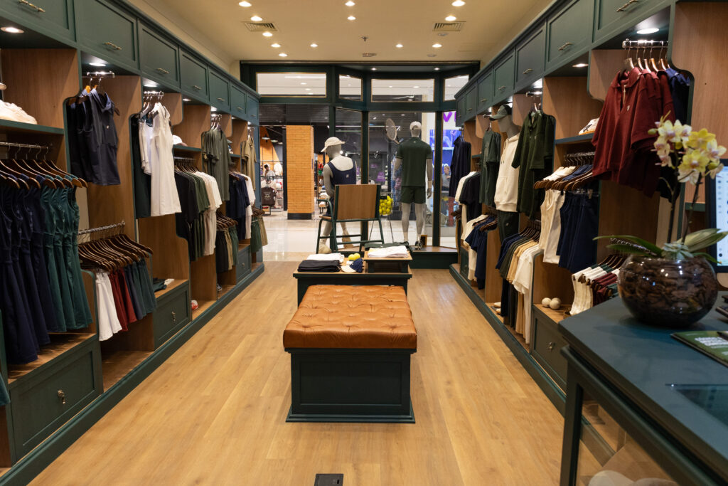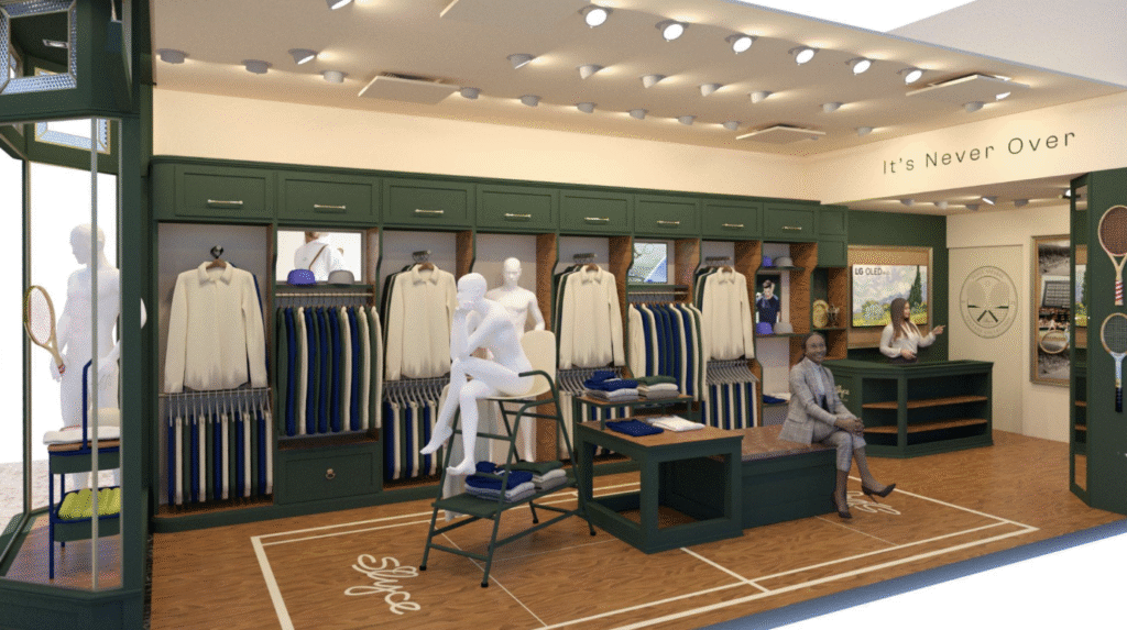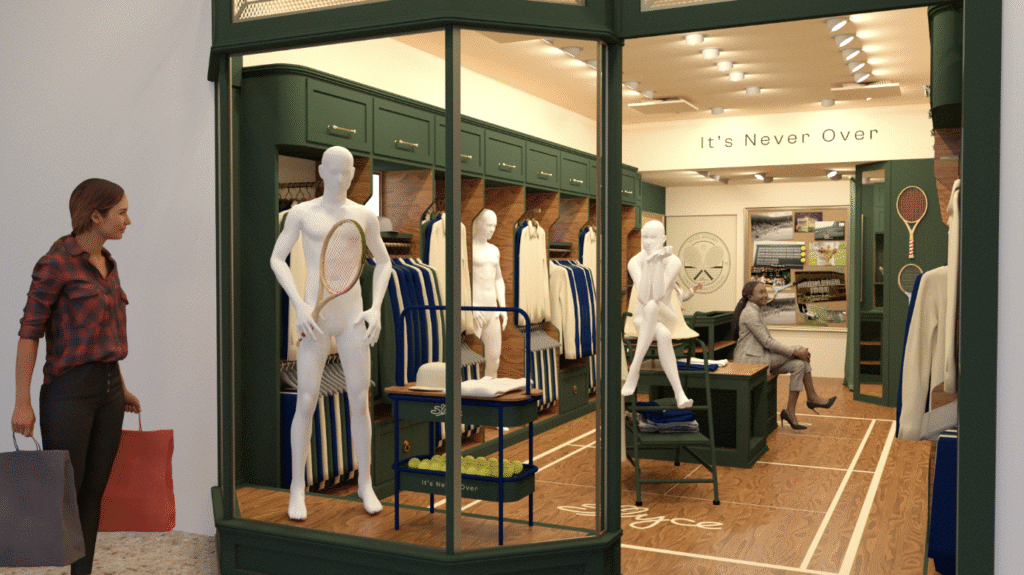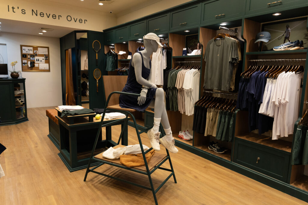 Fachada, mobiliário, visual merchandising e comunicação visual foram cuidadosamente desenhados para traduzir a essência londrina e a tradição do torneio de Wimbledon,  referências que inspiram a marca na criação de seus produtos, tanto casuais quanto de performance.