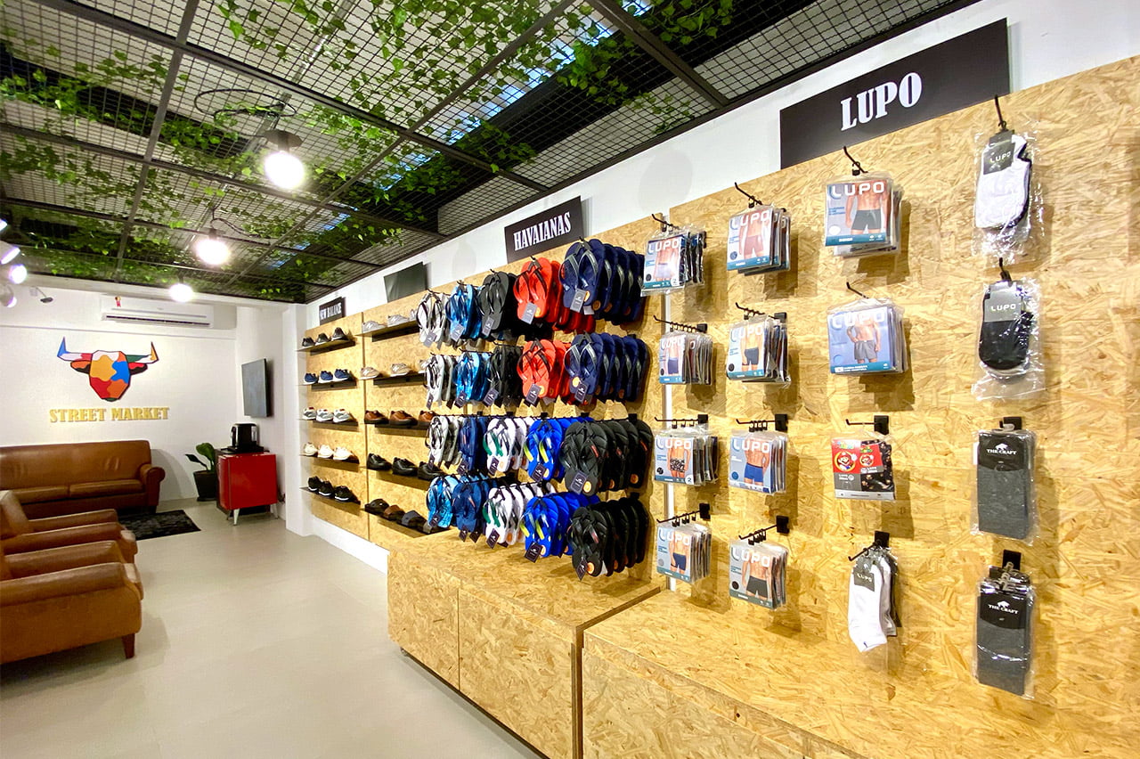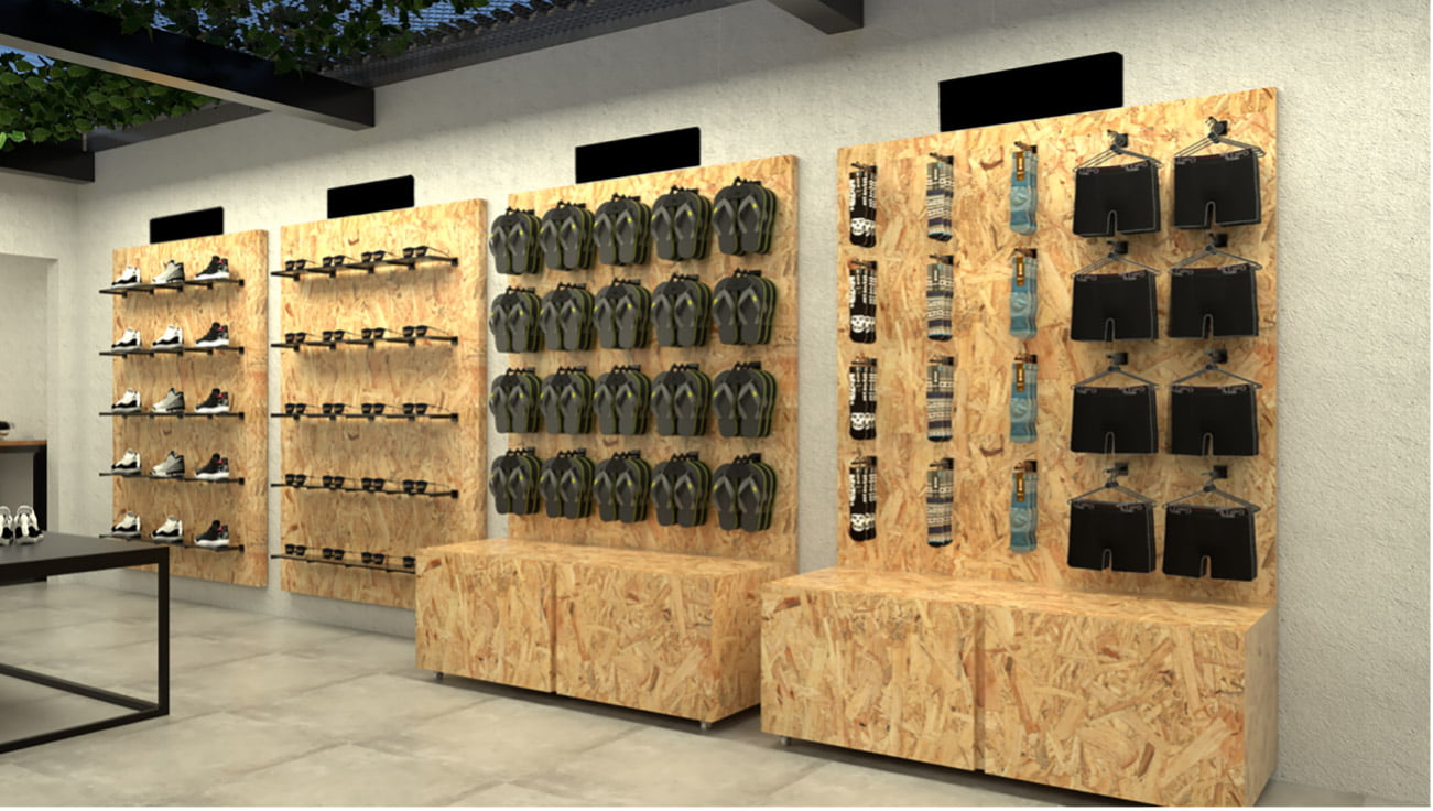 Partimos para o projeto criativo. Tínhamos a missão de desenvolver um projeto reutilizando alguns mobiliários de outras lojas e unificar a exposição dos calçados com os novos produtos da marca.