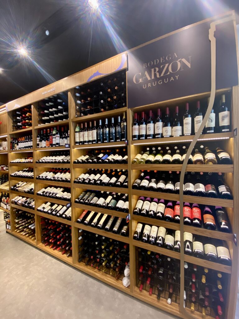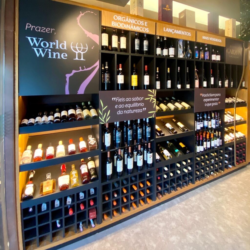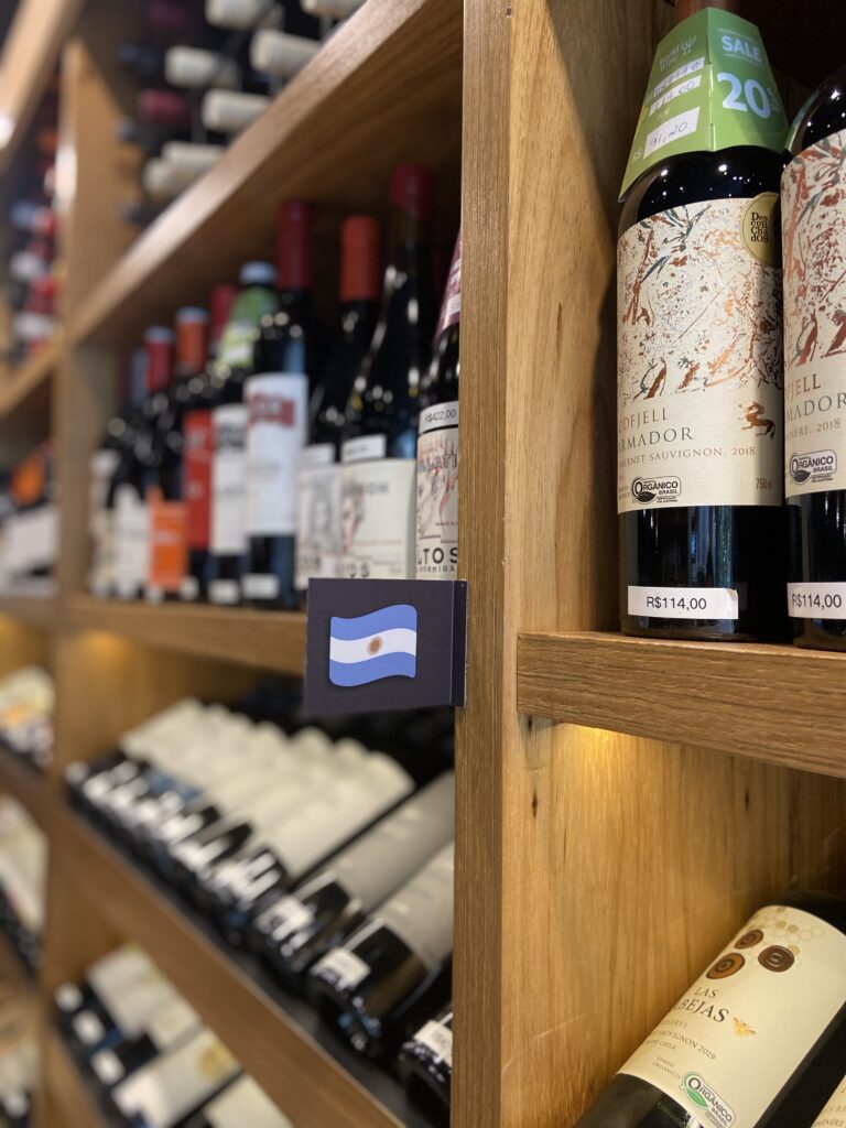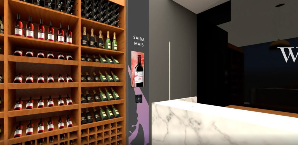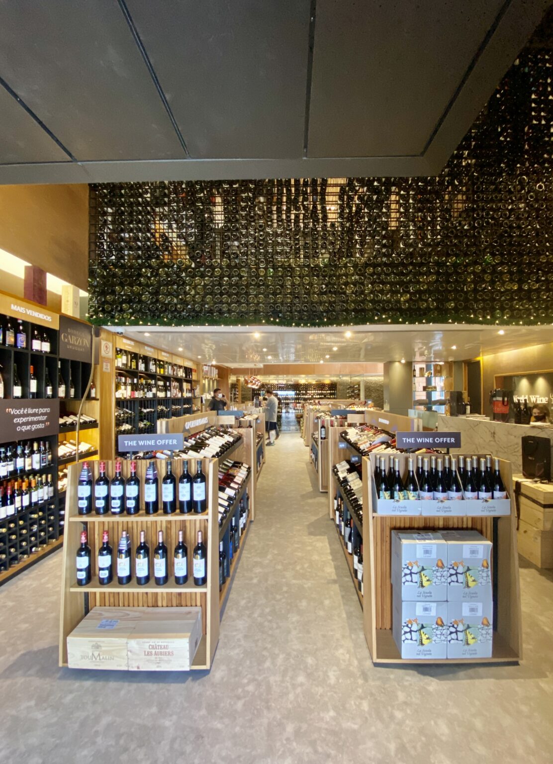 No interior da loja buscamos criar um conceito de categorias por cores, regiões e tipo de uvas. Inserimos também um totem tecnológico para facilitar a consulta dos rótulos e informações sobre vinícolas.